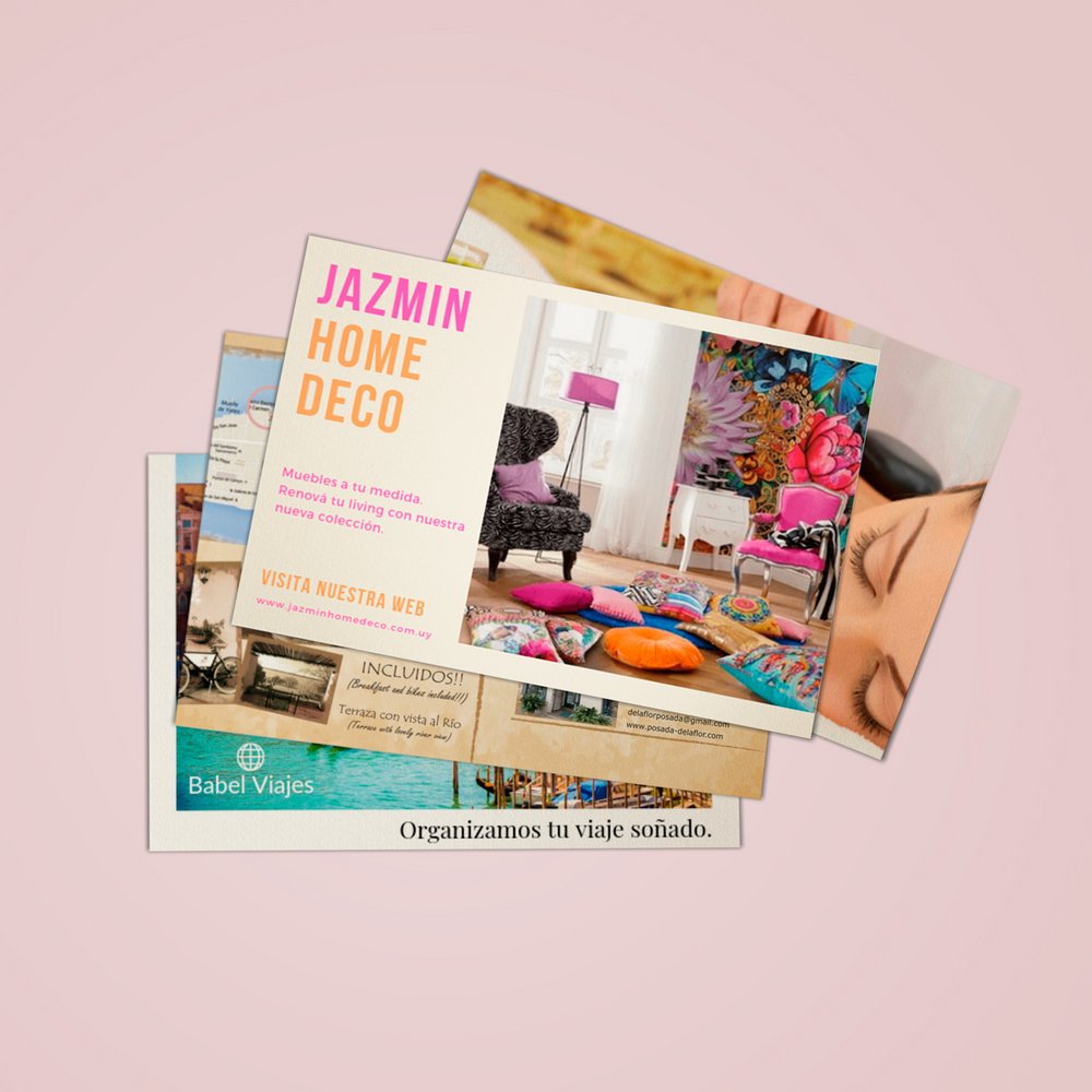 Postales frente a todo color con el dorso negro en Coteado Brillo 350 grs