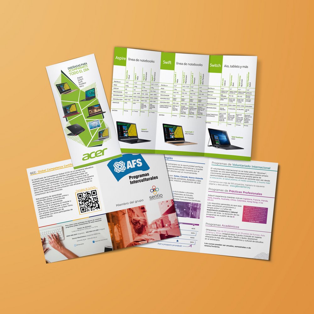 Folletos trípticos y dípticos frente y dorso a todo color en Coteado Brillo 115 grs